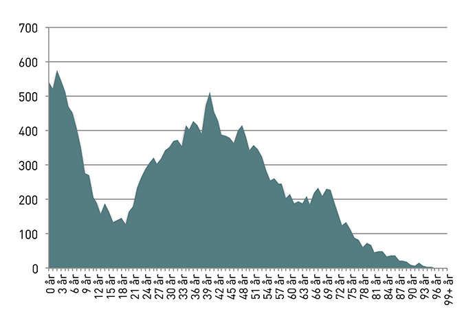 Aldersfordeling på danskere i Skåne