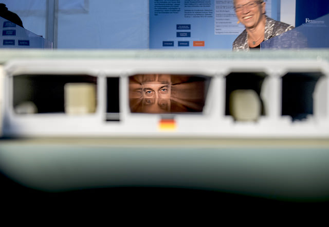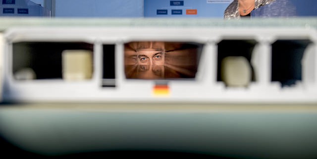 Danmarks transportminister Magnus Heunicke (S) har meddelat Folketingets trafikutskott att elektrifieringen av järnvägen i norra Tyskland troligen blir klar först tre år efter tunnelinvigningen 2021. Det skulle innebära att endast dieseldrivna tåg kan köra genom den dansk-tyska tunneln och in i Tyskland mellan 2021 och 2024. På Bilden tittar Magnus Heunicke genom en modell av tunneln. Foto: News Øresund – Johan Wessman